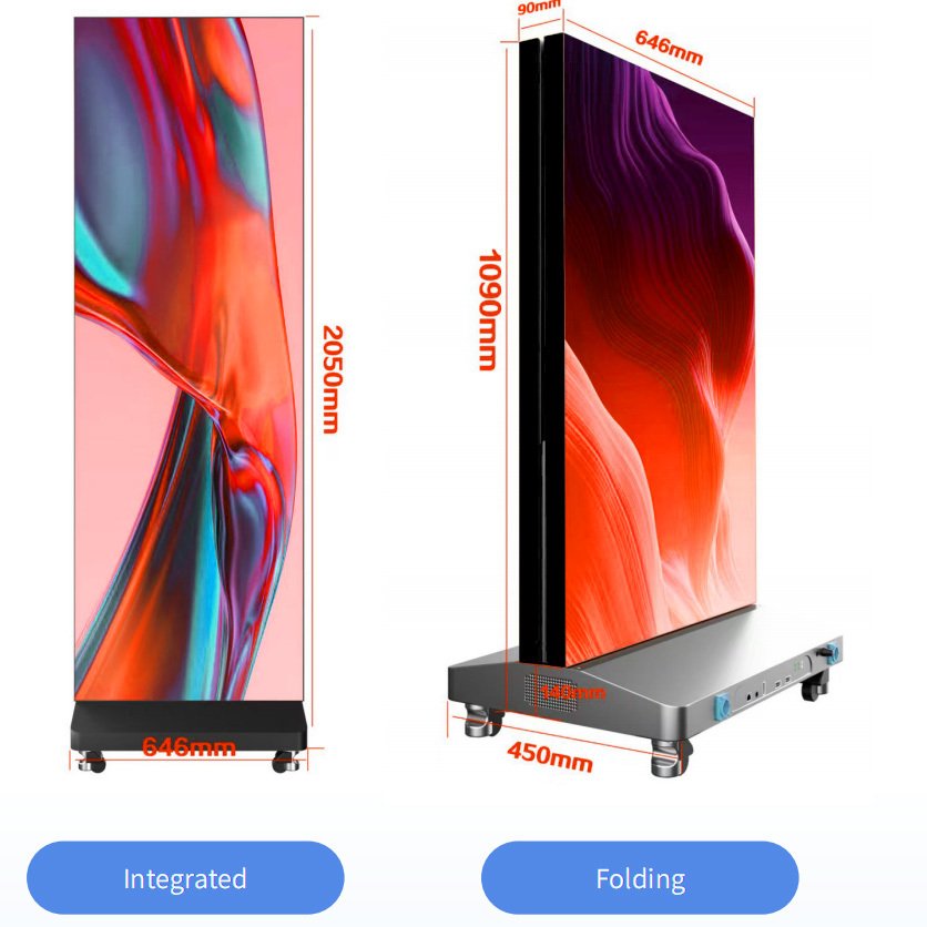 LED foldable display screens have become an innovative solution in the field of product display due to their movable and spliceable characteristics.With a universal wheel base, it supports seamless splicing of multiple screens to form a large display wall.